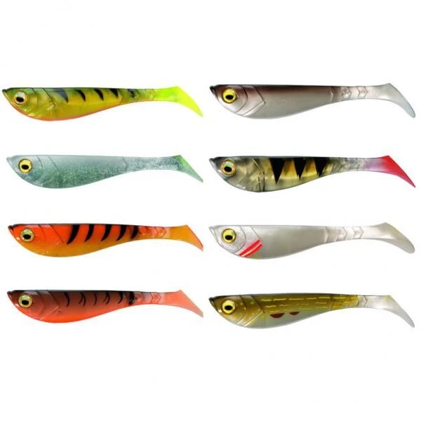 De shads zijn voorzien van de powerbait geur en hebben een brede actie.