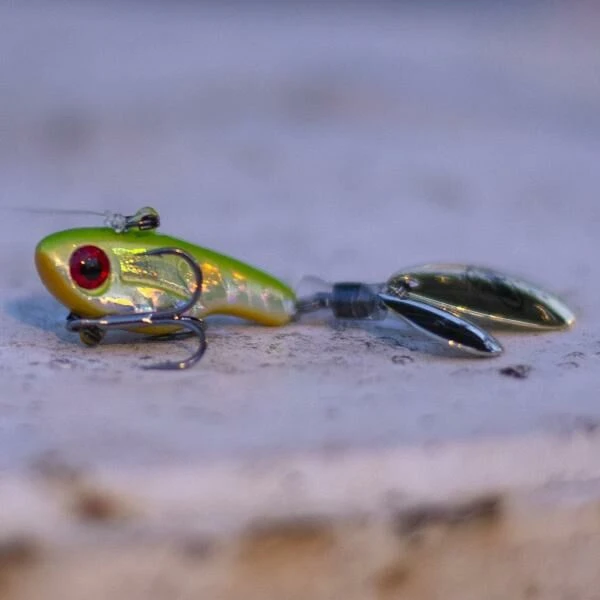De Berkley Pulse Spintail heeft een unieke, grillige zwemactie die rovers van een afstand aantrekt. De Spintail is voorzien van niet een maar twee bladen met ieder een andere eigenschap. Doordat het ene blad snel draait en het andere blad langzaam, zorgen de twee bladen voor nog meer turbulentie in het water dan normale spinners. De bladen zijn met een gelagerde swivel vast gemaakt waardoor ze bijzonder soepel draaien en daardoor dus ook goed draaien wanneer je hem langzaam binnendraait. Het grote opvallende oog zorgt samen met de bladen en de opvallende kleuren voor een zeer hoge aantrekkingskracht. Op de buik is een vlijmscherpe Fusion 19 dreg gemonteerd voor een snelle en goede inhaking. De Pulse Spintail is leverbaar in vier verschillende gewichten en daardoor breed inzetbaar. De lichte gewichten zijn perfect te gebruiken bij het finesse vissen op vis als forel en baars, terwijl de hogere gewichten goed te gebruiken zijn op de rivieren bij het vissen op roofblei en baars.