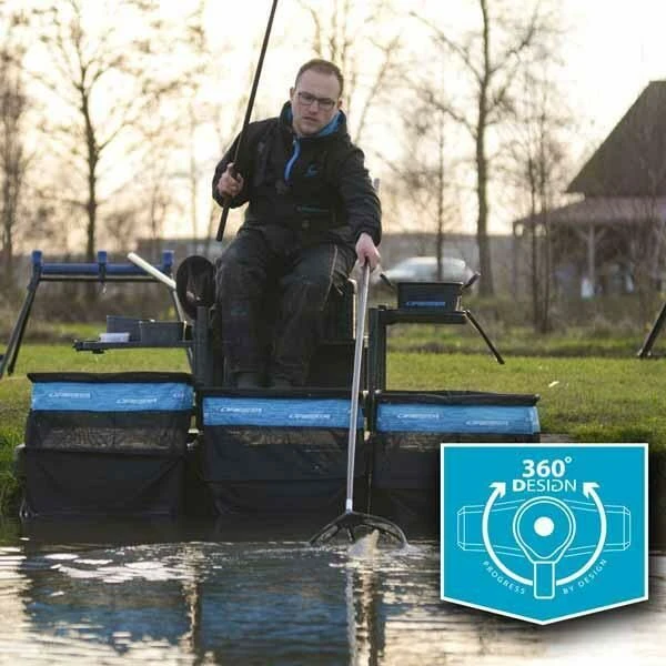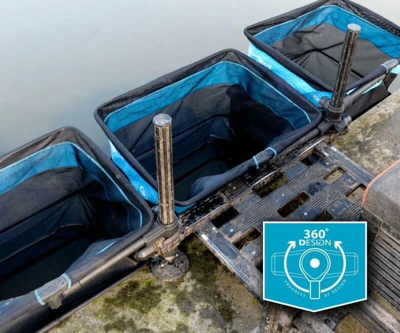 Dit slijtvaste bewaarnet is gemaakt van het zogenaamde ‘carp friendly ultra-fine mesh’-materiaal. Het unieke en robuuste connectieblok is uitgevoerd met 2 schroefdraden. De eerste draad is geplaatst in horizontale positie en kan 360 graden draaien. De vergrote afmetingen van de ringen maken het plaatsen van grote vis met behulp van een schepnet snel en veilig. Dit biedt de mogelijkheid het net in elke gewenste positie ten opzichte van de zitmandpoot te plaatsen. Zelfs het plaatsen van meerdere netten aan een poot in een bereikbare positie, is mogelijk dankzij dit systeem. De tweede draad is in een verticale positie geplaatst voor gebruik in combinatie met een bankstick of toolbar. De stevige, vierkante ringen zorgen ervoor dat het net strak en gespreid over de bodem ligt. De eerste en de twee laatste ringen zijn extra verstevigd. Aan de binnenzijde bevinden zich 2 lussen voor het veilig terugzetten van de vangst. De 2 plastic ringen aan de onderzijde kunnen worden voorzien van een gewicht of bevestigingskoord. Afmeting: 44cm x 58cm