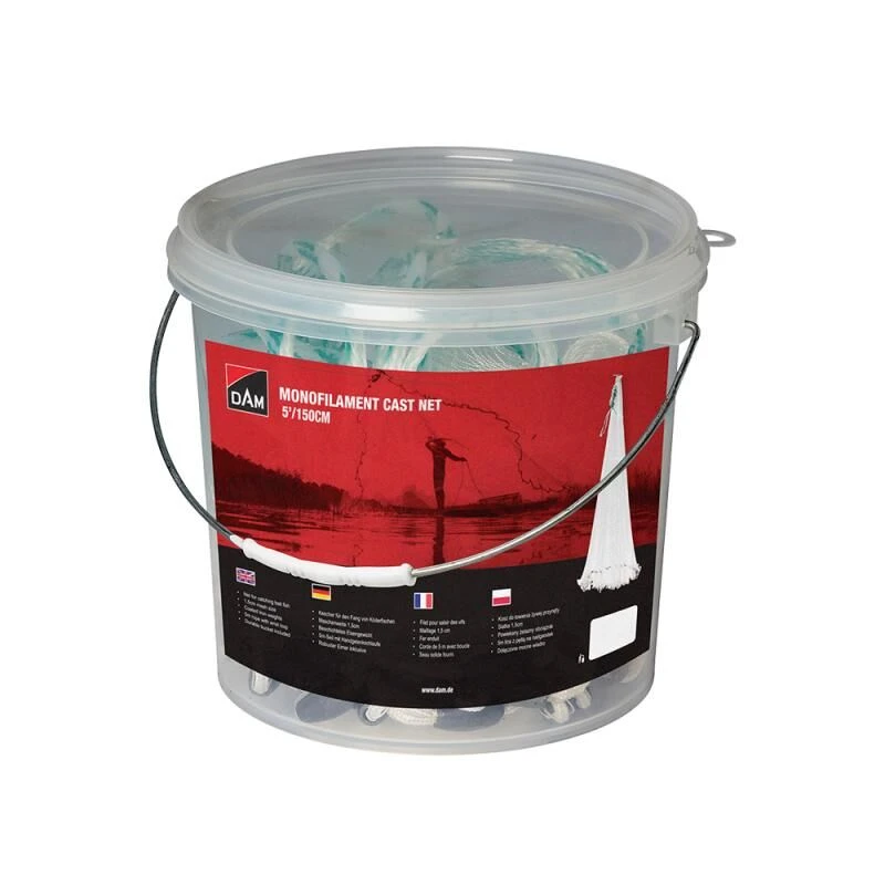Het Dam Manitoba Monofiliment casting is een werpnet met een kleine maaswijdte voor het vangen van aasvis als voorn en alvertjes. Ook is het een leuk net voor op de vakantie , om tijdens het oefenen van je worp te kijken of je een visje of misschien zelfs een hele school weet te vangen. Het Dam manitoba nylon werpnet wordt geleverd in een emmer.