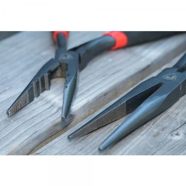 De Fox Rage Pistol Pliers 30cm is een robuuste tang onder een hoek en maakt onthaken eenvoudiger en veiliger. Gemaakt van een hoogwaardige constructie van carbon staal, met Gunmetal grijze afwerking. Voorzien van ergonomische rood/zwarte handgrepen van hard plastic. Pistoolgreep onder een hoek maakt het uitoefenen van druk op haken eenvoudiger, het zorgt voor een grotere hefboom.