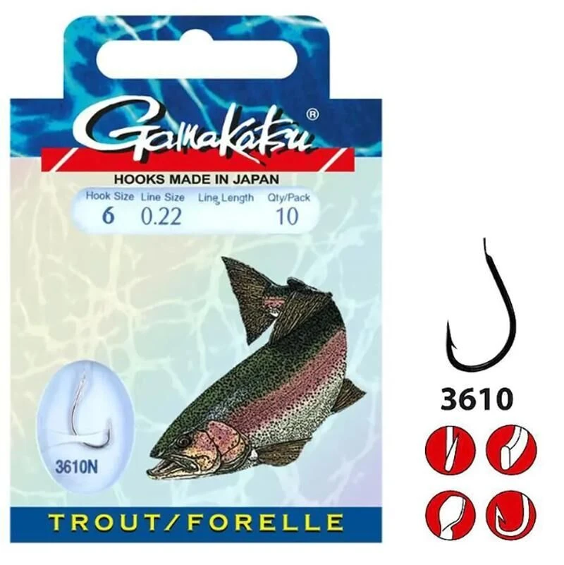 De Gamakatsu LS-3610N Forel 200cm is een onderlijn speciaal gemaakt voor het forelvissen. Deze is verkrijgbaar in 200cm. Ze worden geknoopt met sterke nylon lijn zodat de meest sterke Forellen binnen gehengeld kunnen worden.