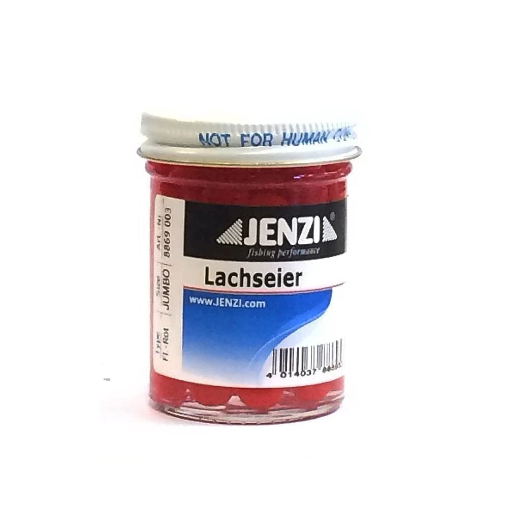Wanneer men eens met iets anders wil vissen als powerbait. Zalmeitjes donkerrood, voor het vissen op forel en zalm.