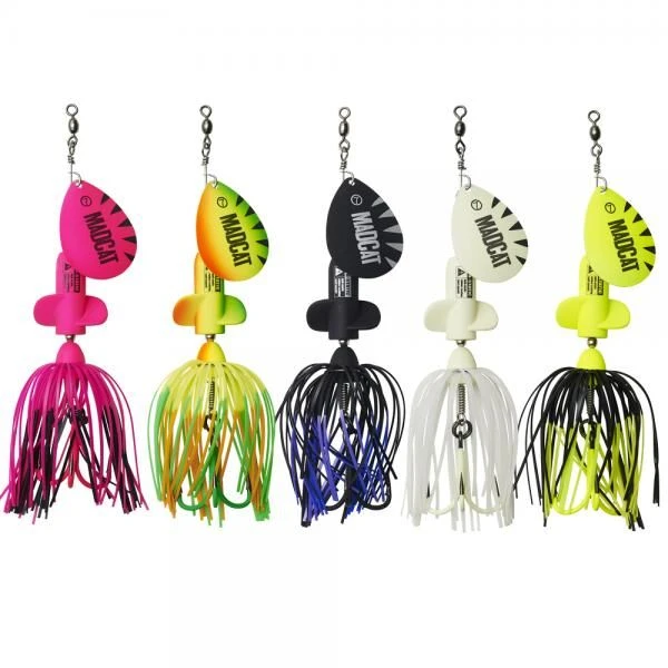 De volgende generatie MADCAT® spinners, in aantrekkelijke kleuren. Een A-STATIC Screaming Spinner heeft zoveel meer te bieden dan andere, gewone spinners: het blad begint altijd meteen te draaien, het draaiende lichaam heeft metalen ballen die non-stop schreeuwen en het is A-STATIC: om het elektrische veld dat meervallen schrik aanjaagt tot een minimum te beperken. Plus: hij wordt geleverd met een supersterke en ultrascherpe, 6X sterke kwaliteits dreg, maat 3/0. Let op: de rubberen coating kan afslijten tijdens het gebruik.