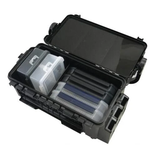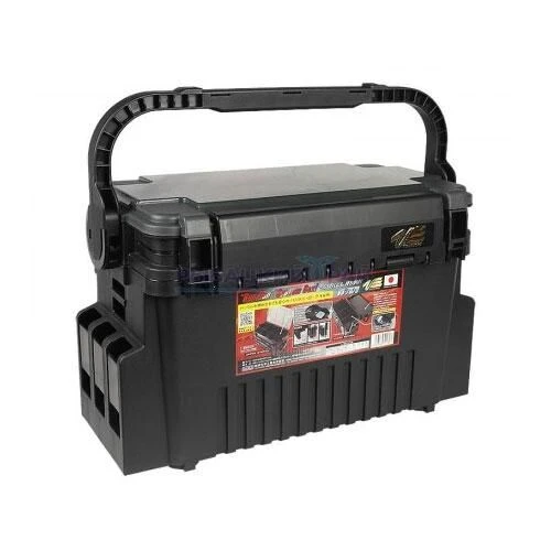 Deze systeemkist voor het vissen op zeebaars. Stevige zitkist gemaakt van schokbestendig polymeer kunststof. Perfect als een uiterst robuuste pilkerbox of ook voor de mobiele spinvisser. Door de hoekige vorm is hij gemakkelijk aan boord op te bergen. 4 rubberen voetjes voorkomen trillingsgeluiden en zorgen voor een veilige stand. De forelvisser zal blij zijn met de vlakke tafel die rust op de brede handgreep. Groot, transparant dekselcompartiment, vrij verdeelbaar, voor het opbergen van leaders, tangen, wartels enz. Alle compartimenten zijn voorzien van veiligheidssluitingen om onbedoeld openen te voorkomen. Kan worden aangevuld met maximaal 6 hengelhouders, diverse accessoires zoals aasboxen, drinkhouder en draagriem (accessoires, hengelhouders en draagriem niet inbegrepen).