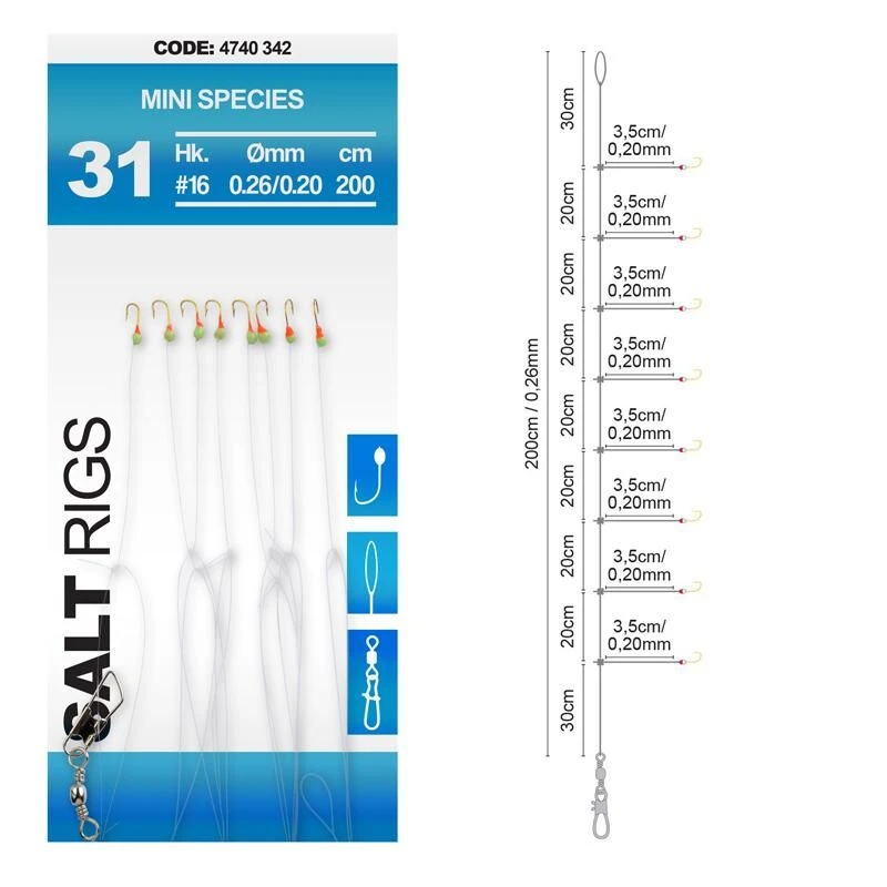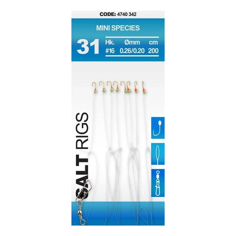 Deze paternosters van Spro zijn supermakkelijk in gebruik. En speciaal voor het vissen zeebliek. Je bindt de lijn aan je hoofdlijn, De onderlijn is handgebonden uit stevig fluorocarbon wat je lijn nagenoeg onzichtbaar maakt onder water. De kleurige attractors op de zijlijnen bieden je aas extra aantrekkelijk aan en trekken snel de aandacht van de vis. Je kan deze onderlijnen gebruiken bij het vissen vanuit een boot of vanaf de kant. uitgevoerd met 8 haken maat 16