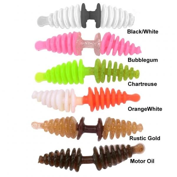 De Trout Master Wacka is een volledig unieke forelsoftbait. Twee geribbelde delen zijn met elkaar verbonden om in het midden een enkele haak te kunnen positioneren. Het uiteinde heeft een afgeplatte staart voor het plaatsen van een 2 grams loodje. Zo gerigd, danst de ultralichte Wacka onweerstaanbaar over de bodem van het meer. De Gamakatsuworm 318 wacky is hier de perfecte haak voor. De Wacka kan natuurlijk ook in combinatie met de Trout Master Tunsten Jighead gevist worden. Geïm-pregneerd met krachtig knoflook aroma.