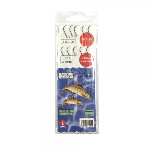 Deze onderlijnen zijn gemaakt voor de forel de lengte is 30 cm gebonden op 3 verschillende haken, en 3 verschillende lijndiktes. 15 onderlijnen op kaart.